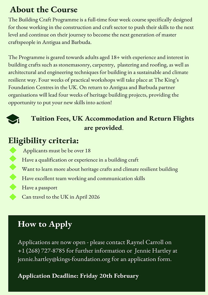New Building Craft Programme for Antigua and Barbuda with The King’s Foundation, UK